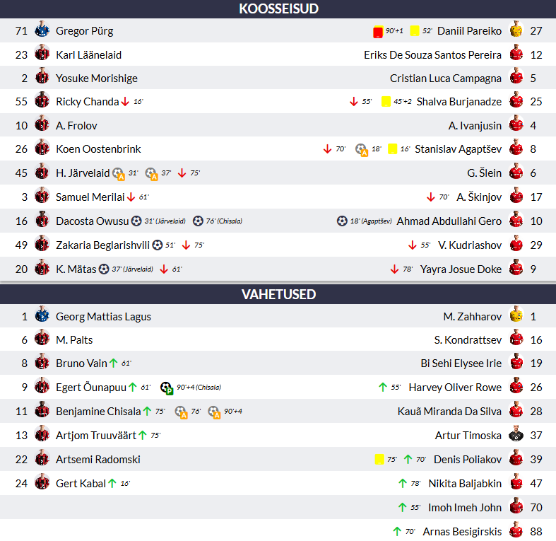 В ворота встал нападающий Ахмад Геро, но спасти команду не удалось — Эгерт Ыунапуу реализовал 11-метровый удар. Итог — 5:1.